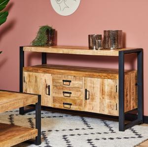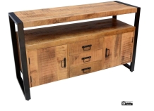Stoer TV meubel van mango hout in industriële woonstijl.